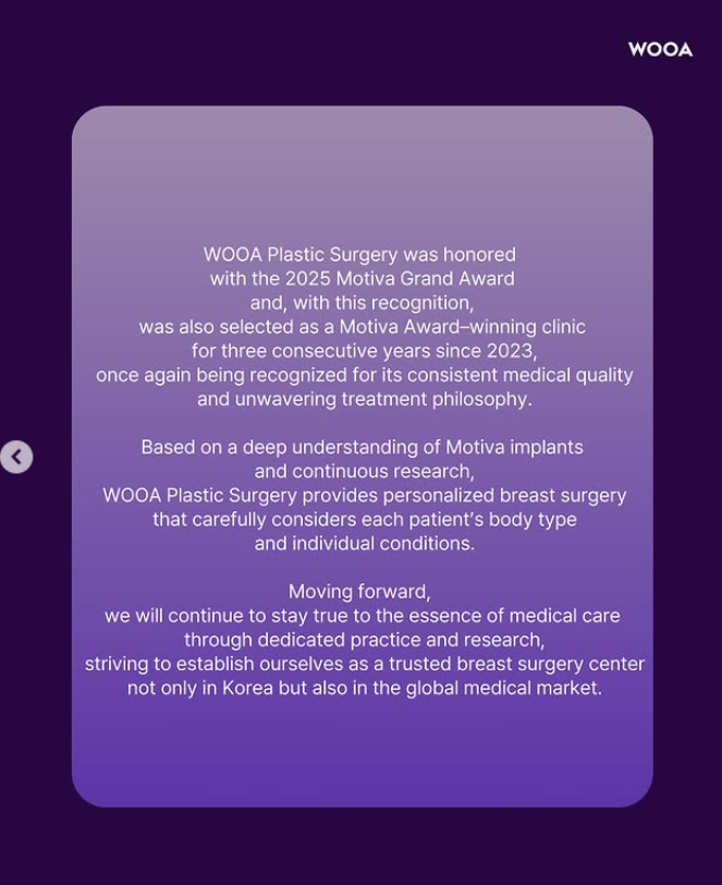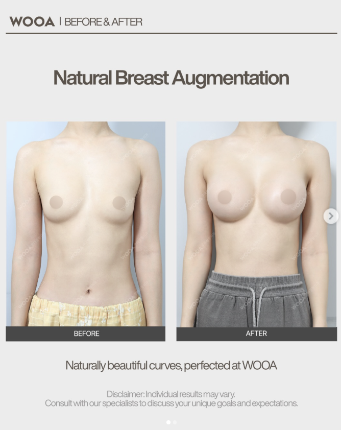 At WOOA Plastic Surgery Korea, we achieve highly satisfying, natural results by carefully selecting the most suitable surgical techniques, always focusing on balanced and harmonious breast proportions.